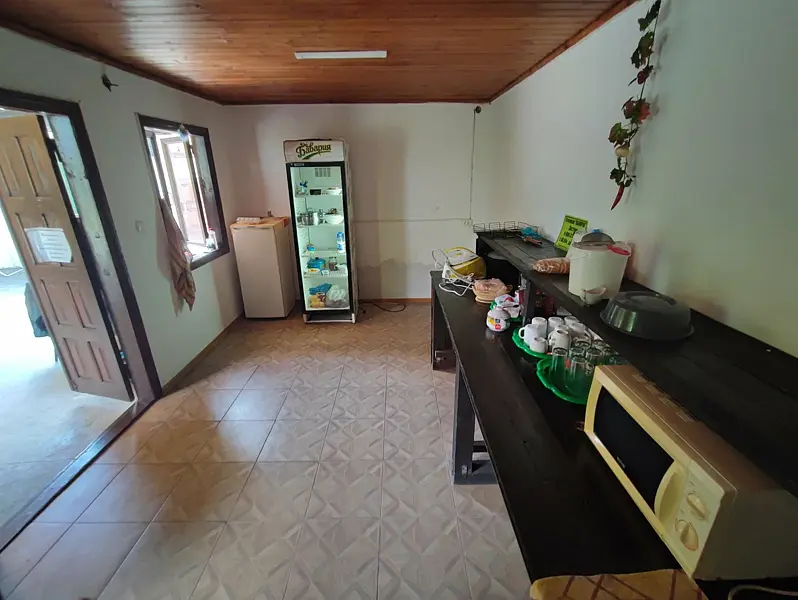 Общая кухня оборудована бытовой техникой для того, чтобы гости смоги самостоятельно готовить. Имеется плита, микроволновая печь, а также набор посуды. Помимо этого, поблизости расположены кафе и столовые.