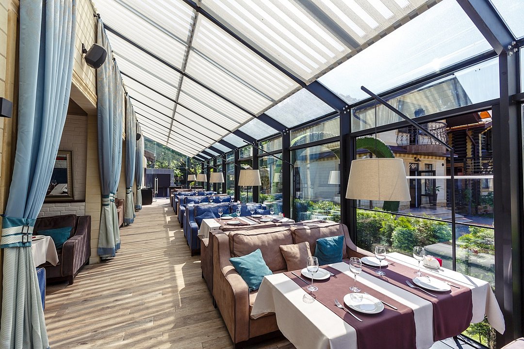Тип меню: европейская кухня, русская кухня, кавказская кухняДобро пожаловать в наш роскошный ресторан Загородного клуба «Ягода Малина» в Геленджике, который порадует разнообразием и качеством блюд разработанных шеф-поваром. В меню представлены лучшие блюда европейской, русской и кавказской кухни, для приготовления которых мы используем только экологически чистые и отборные продукты.