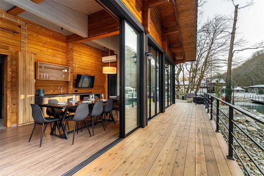Жилой комплекс состоит из номеров, расположенных в двухэтажных коттеджах. Каждое помещение оборудовано всеми необходимыми удобствами, чтобы обеспечить комфортный отдых для всей семьи. Для больших компаний предусмотрен просторный коттедж «Матрешка», оснащенный караоке и кальяном, что идеально подходит для организации закрытых праздников. В клубе функционирует ресторан, предлагающий широкий выбор высококачественных блюд, которые разрабатывает шеф-повар с учетом современных гастрономических трендов. В меню представлены деликатесы русской, европейской и кавказской кухонь, для приготовления которых используются только экологически чистые ингредиенты.