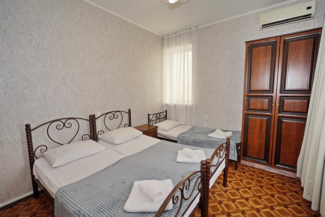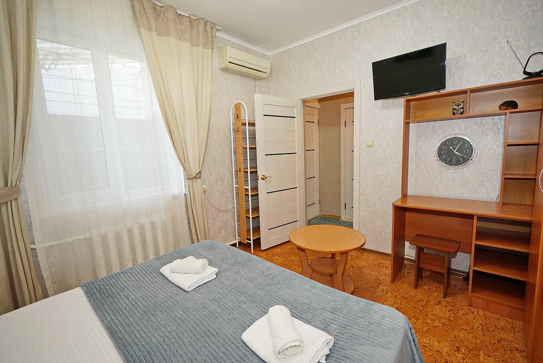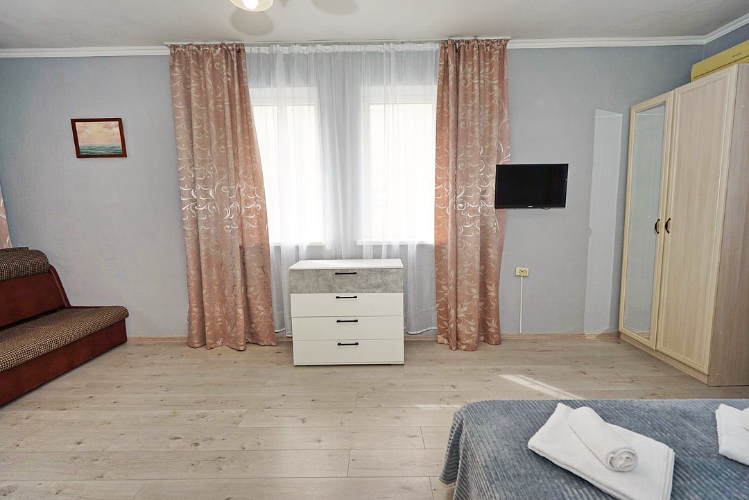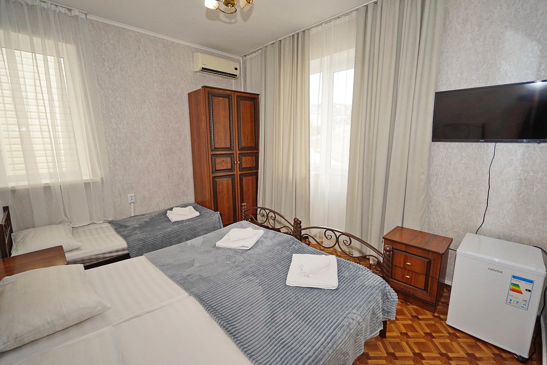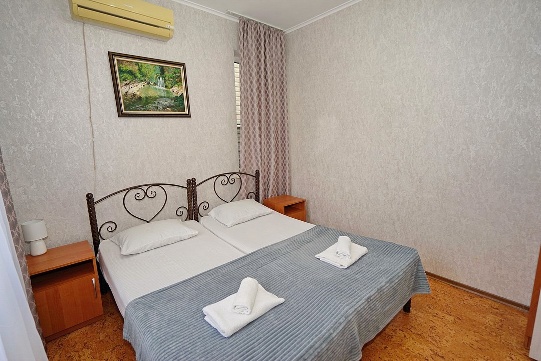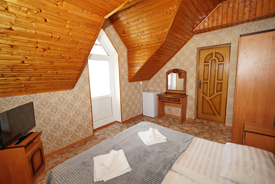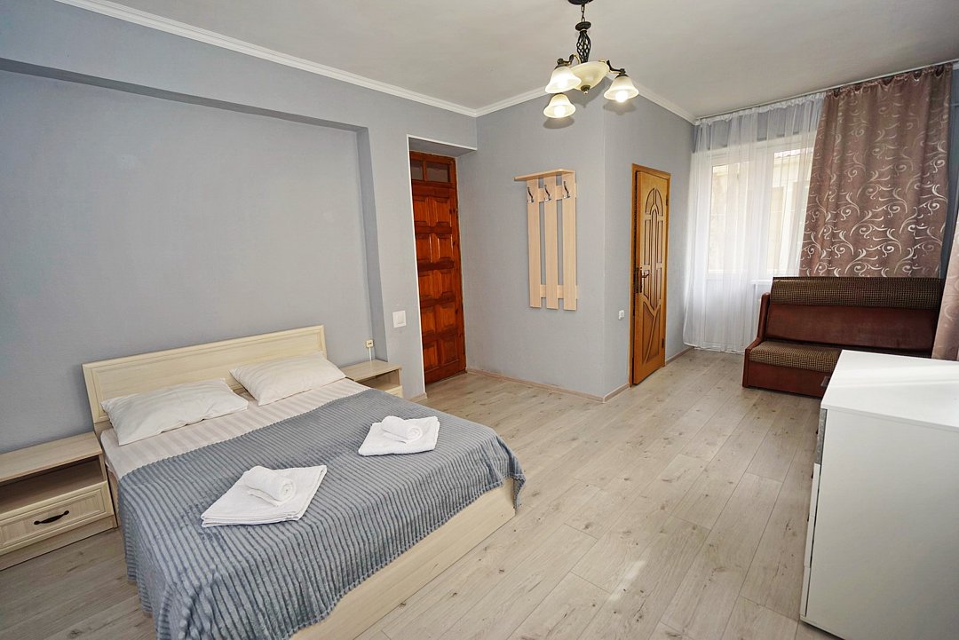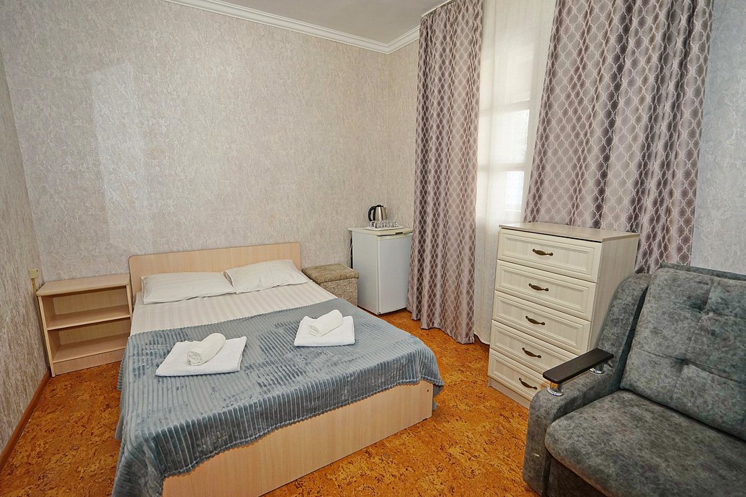 В гостевом доме ждут уютные номера, оформленные в современном стиле, различных категорий: 2х-, 3х- и 4х-местные. Каждый номер оснащен всем необходимым для комфортного проживания: кондиционером, телевизором, холодильником и бесплатным Wi-Fi. Также есть номера для больших компаний: двухкомнатный комфортабельный этаж под-ключ для 6 человек с личной кухней; двухкомнатный, уютный дом с личным двориком, мангалом и зоной отдыха на 6 человек. Комнаты в доме изолированные.