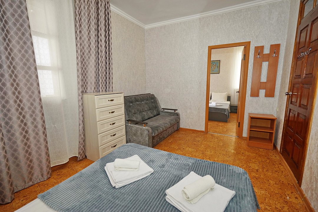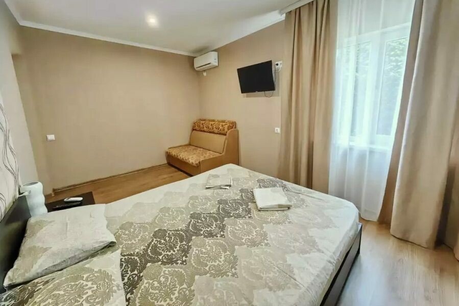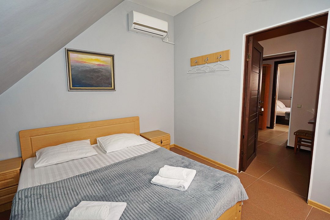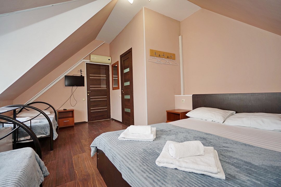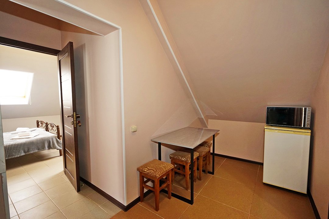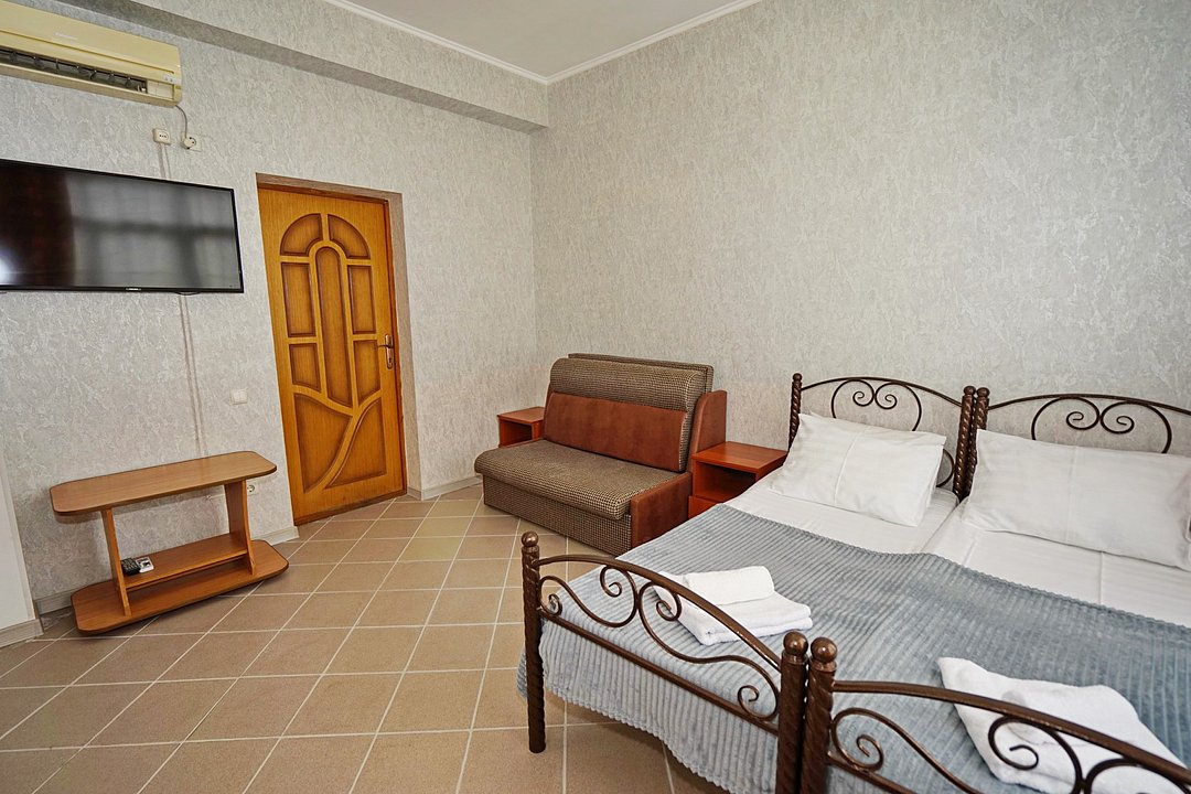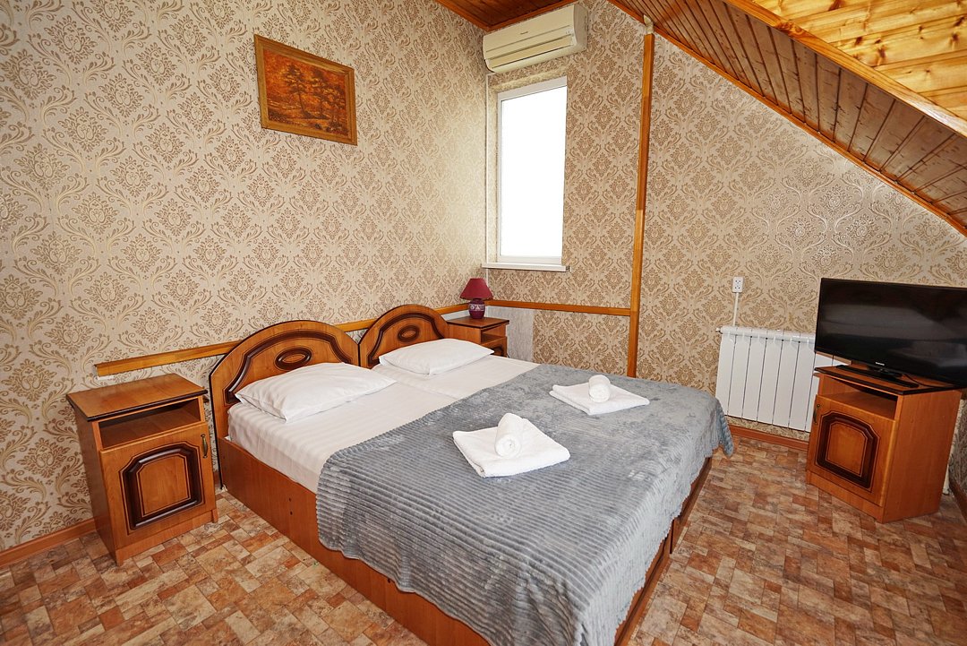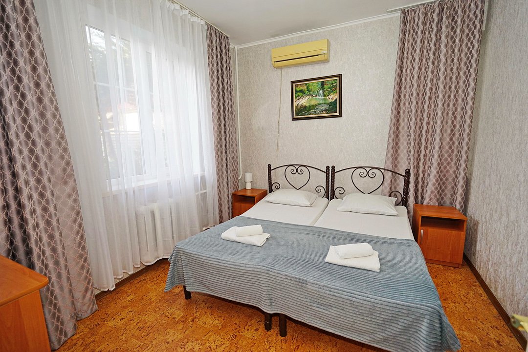 В гостевом доме ждут уютные номера, оформленные в современном стиле, различных категорий: 2х-, 3х- и 4х-местные. Каждый номер оснащен всем необходимым для комфортного проживания: кондиционером, телевизором, холодильником и бесплатным Wi-Fi. Также есть номера для больших компаний: двухкомнатный комфортабельный этаж под-ключ для 6 человек с личной кухней; двухкомнатный, уютный дом с личным двориком, мангалом и зоной отдыха на 6 человек. Комнаты в доме изолированные.