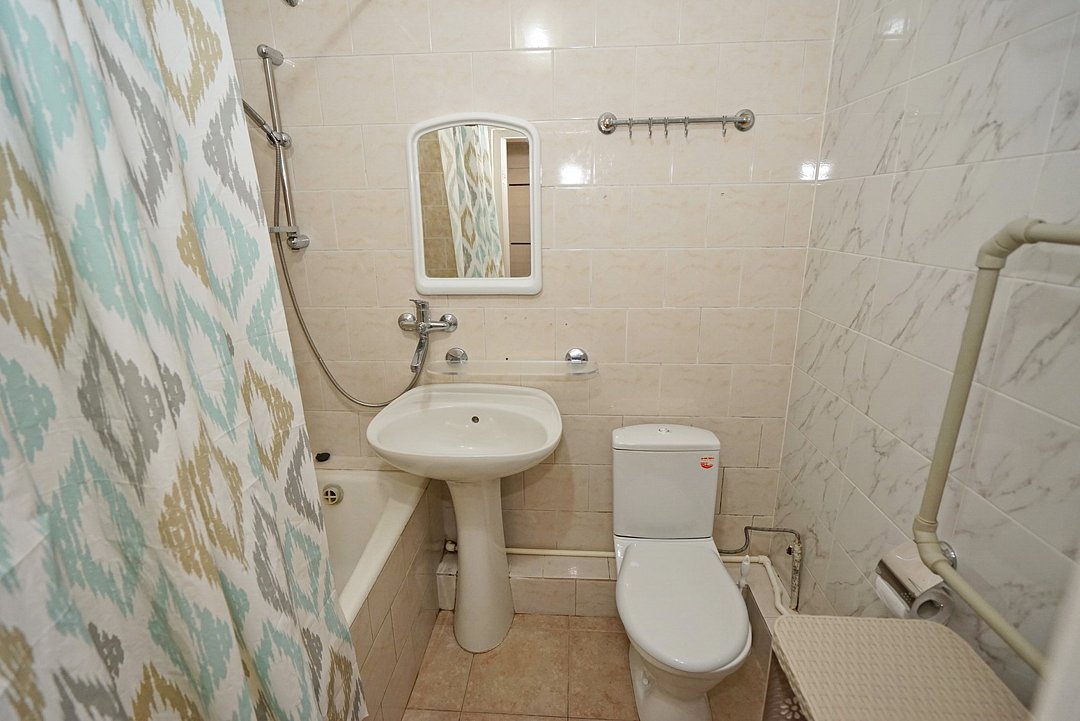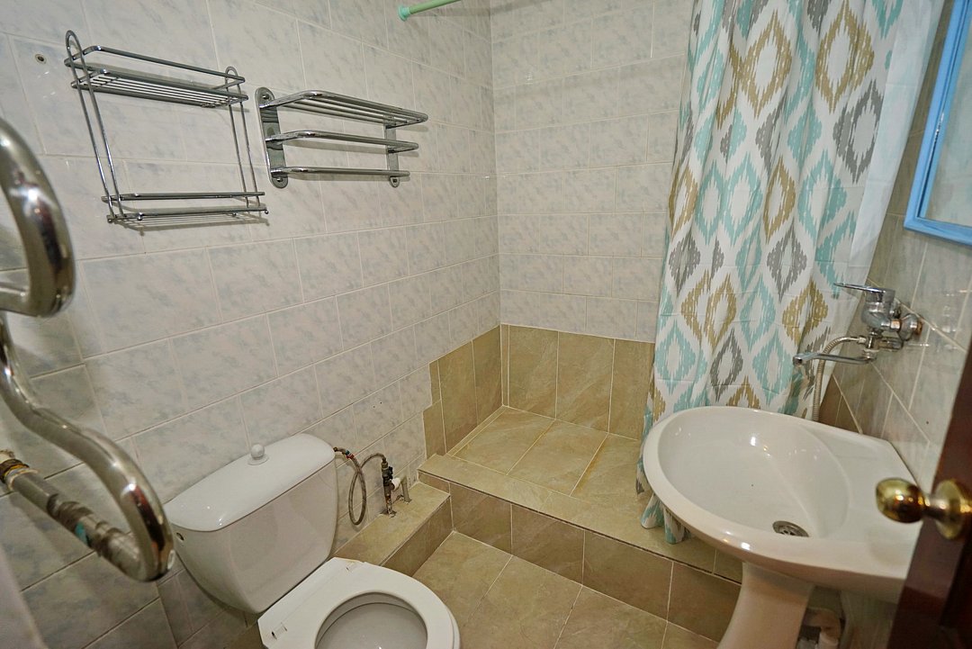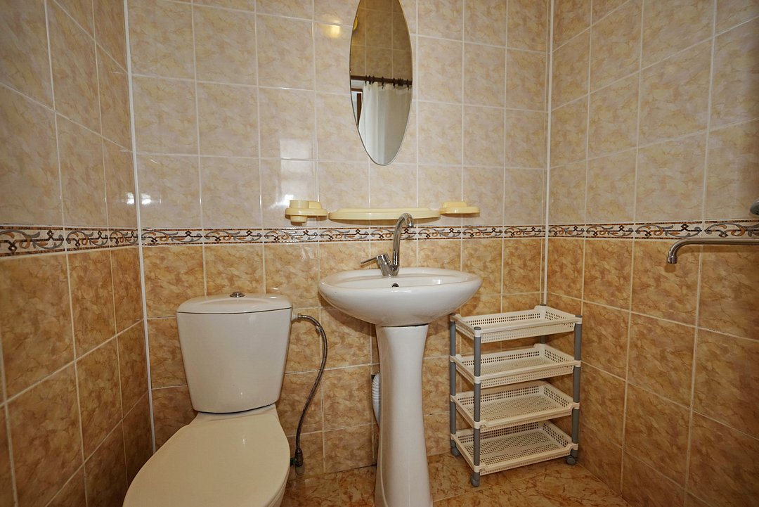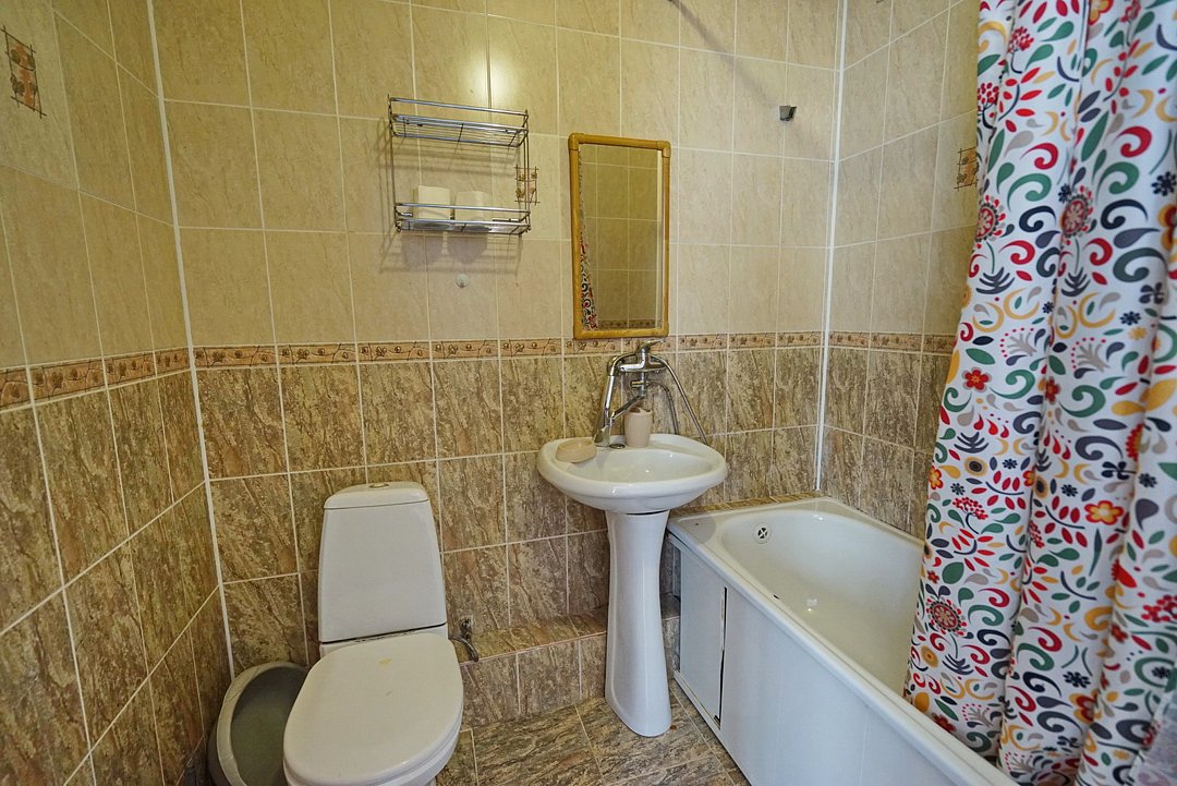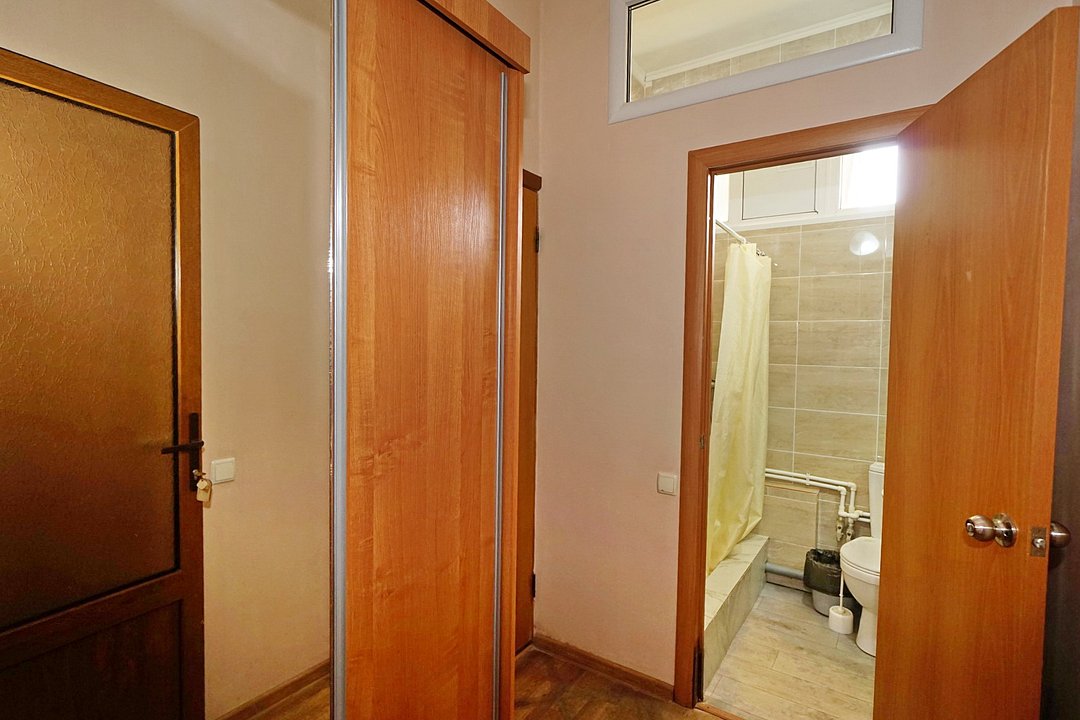 Есть всё необходимое: стол, стулья, шкаф, тумбочки, прихожая с вешалкой и зеркалом. Из техники — телевизор со спутниковым ТВ, холодильник, беспроводной интернет и кондиционер.