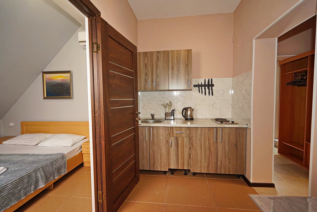 Двухкомнатный номер с изолированными комнатами, личной кухней и отдельным входом.