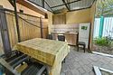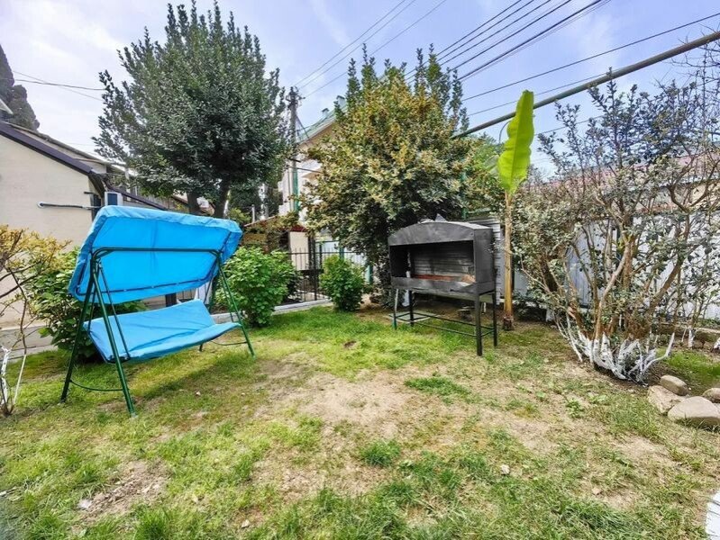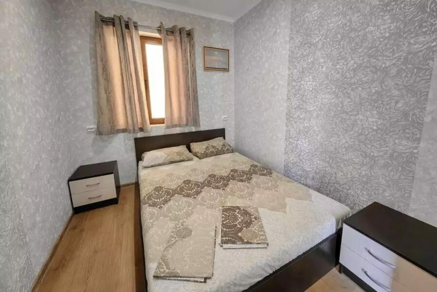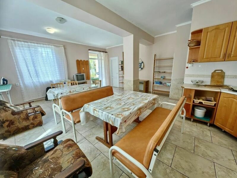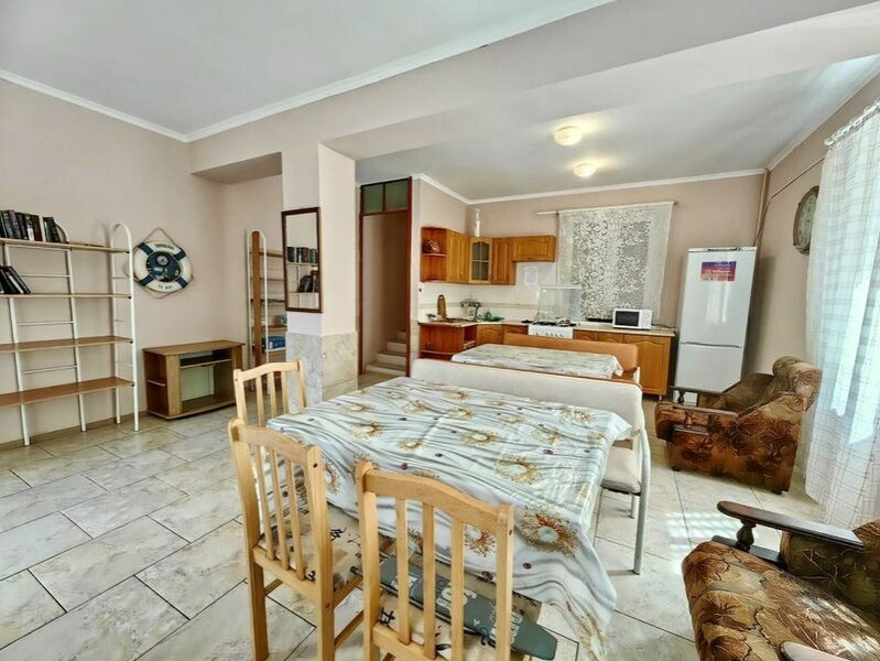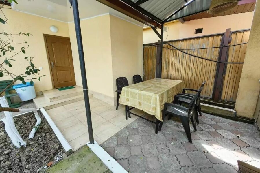 Внутри: Две изолированные комнаты с оснащённостью спальных мест, две двуспальные кровати и диван-кровать, К дому прилагается свой двор , личная кухня обеспеченная (оборудованием): холодильник, кухонный гарнитур, плита, полный набор посуды и обеденная зона.