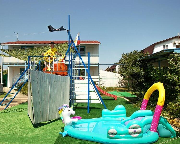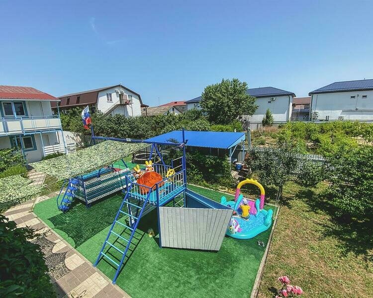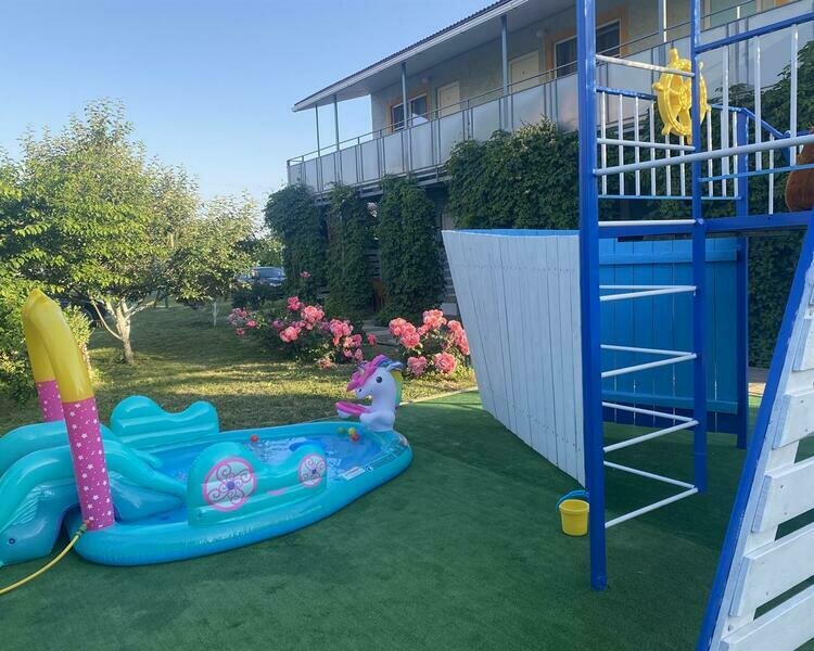 Особое внимание уделено отдыху с детьми. Гостям бесплатно предоставляются детская кроватка, прогулочная коляска, стульчик для кормления, игрушки. Для малышей предусмотрены игровая зона, батут, детский бассейн и площадка.
