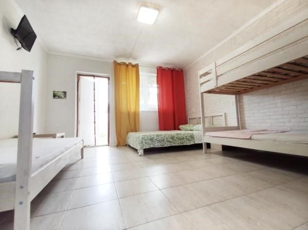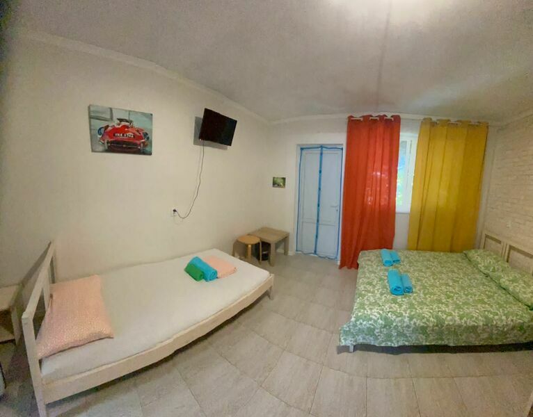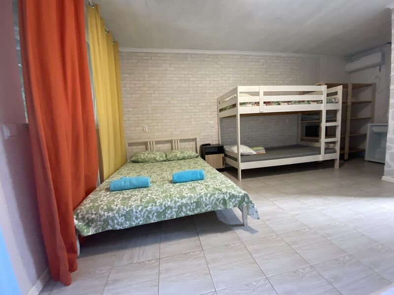 Семейный пятиместный номер, в номере двуспальная кровать, односпальная кровать и двухъярусная кровать. При желании можно установить раскладную кровать. В каждом номере санузел.