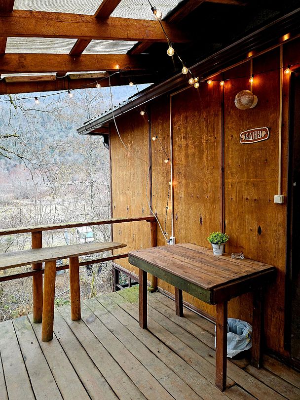 Проживание в трехместном комфортабельном номере, расположенном на берегу горной реки. Со всеми удобствами: душ, туалет, двуспальная кровать, Wi-Fi и собственной террасой.
