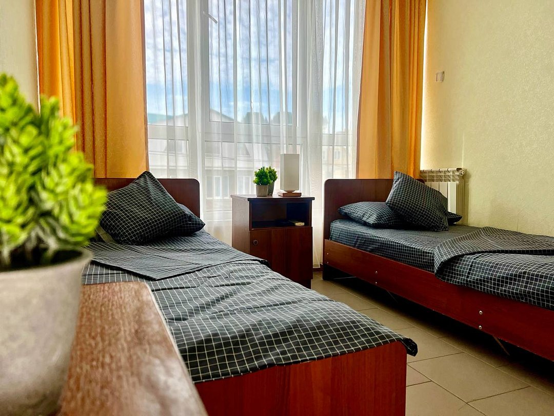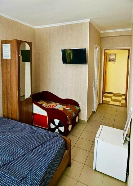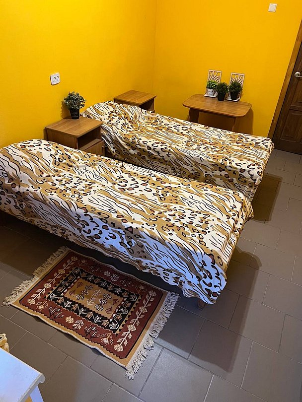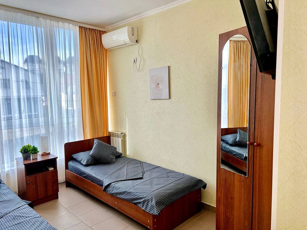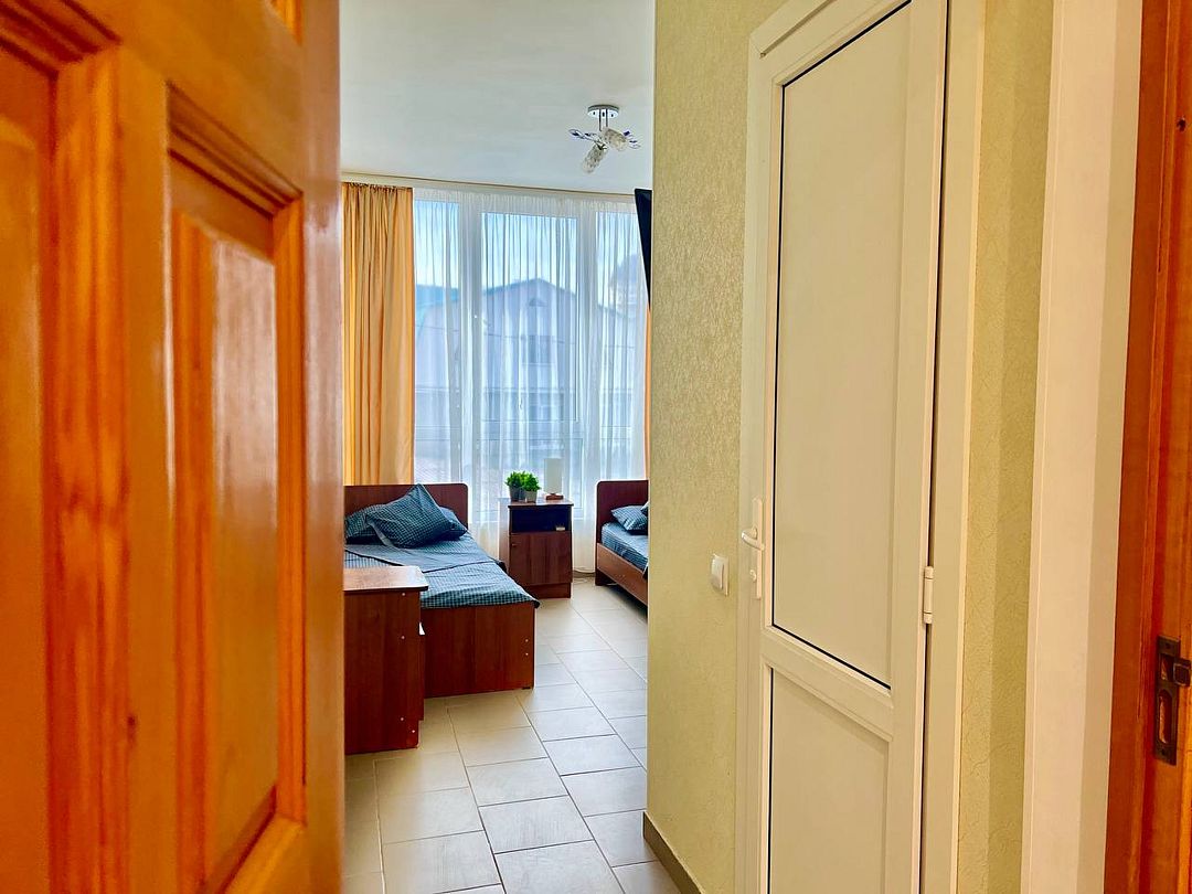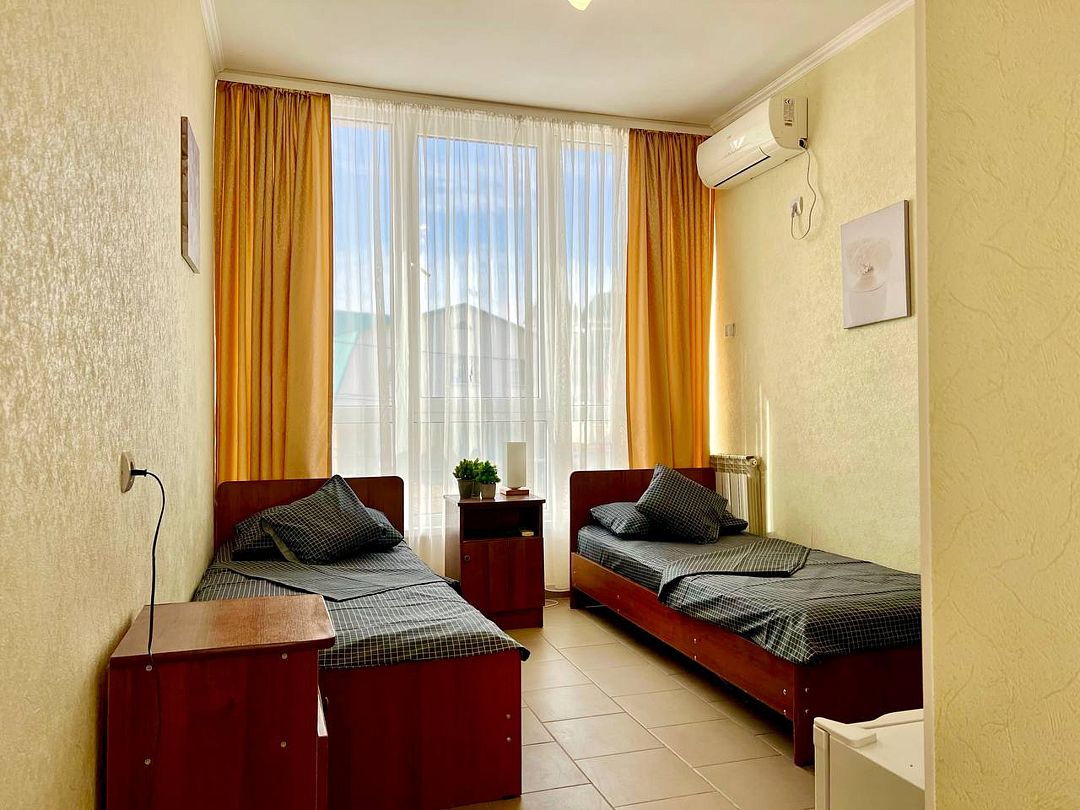 Трехэтажное здание гостевого дома предлагает тринадцать комфортабельных номеров различных категорий, каждый из которых оснащен всем необходимым для комфортного проживания: от телевизора и кондиционера до собственного санузла.