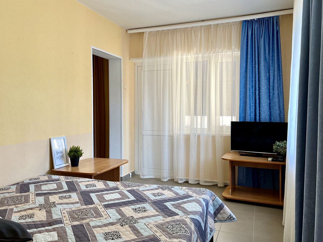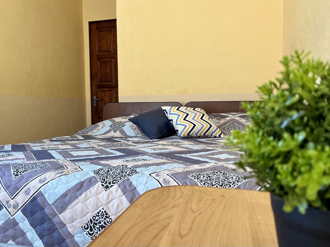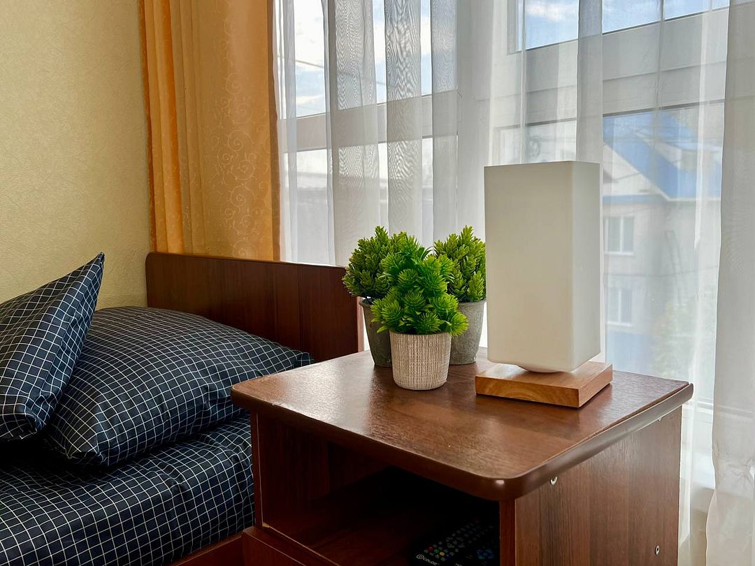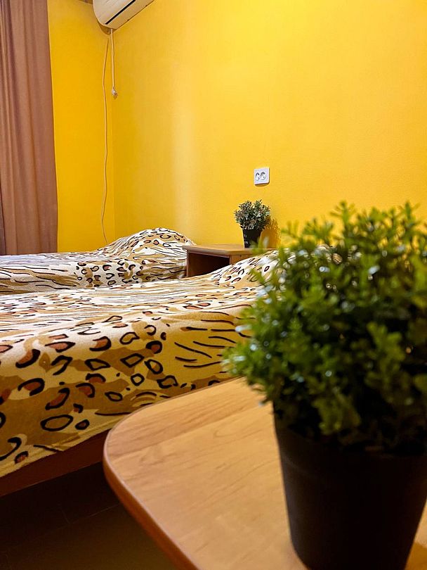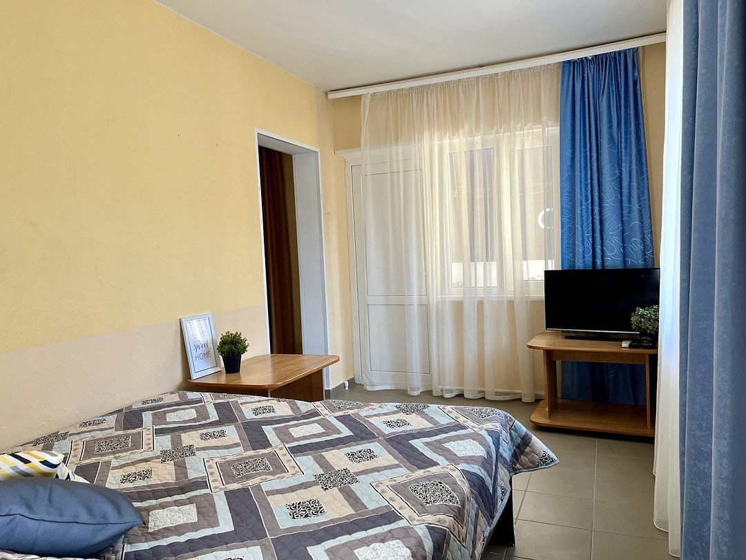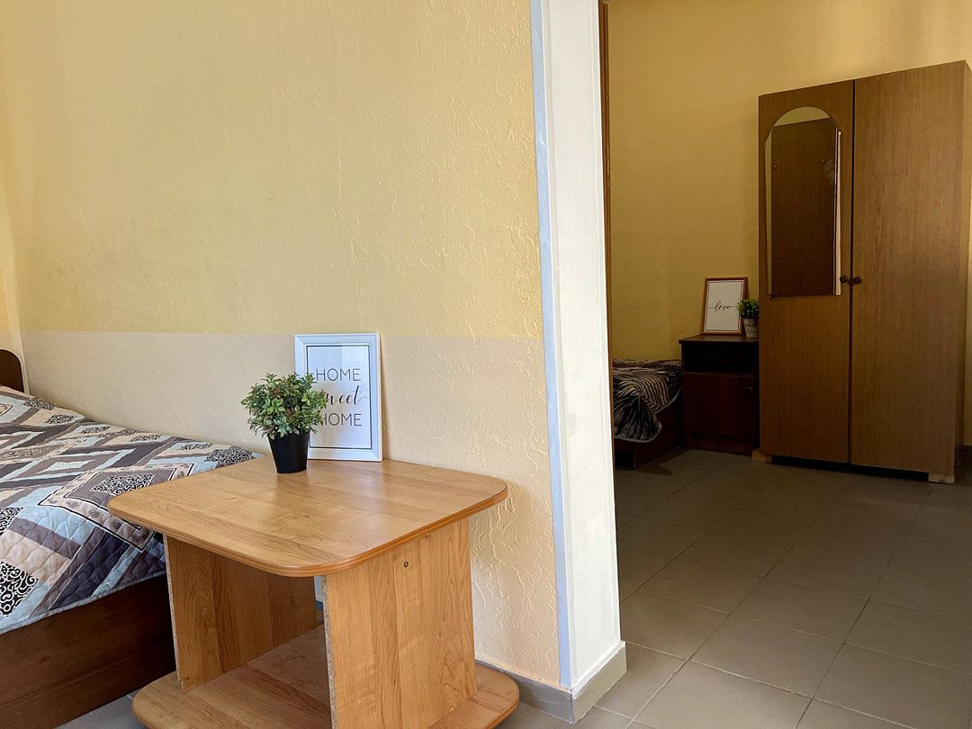 Трехэтажное здание гостевого дома предлагает тринадцать комфортабельных номеров различных категорий, каждый из которых оснащен всем необходимым для комфортного проживания: от телевизора и кондиционера до собственного санузла.