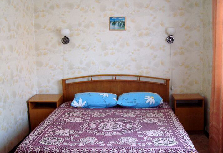 В домике есть: прихожая, 3 спальни. В каждой спальне – две полуторные раздельные кровати.