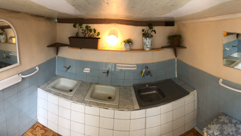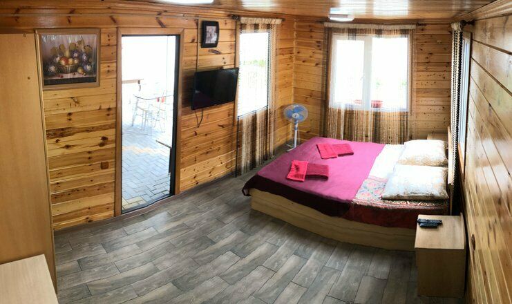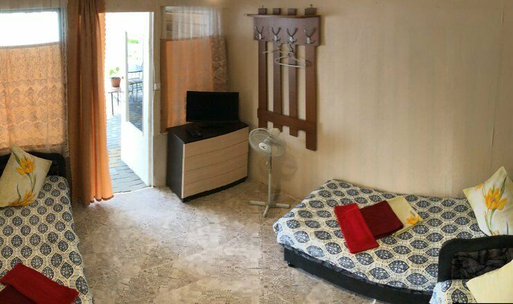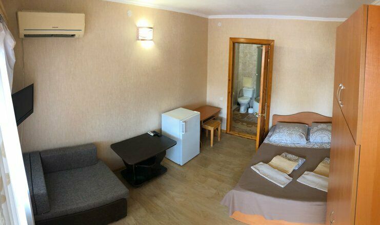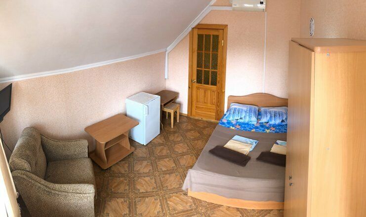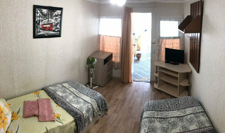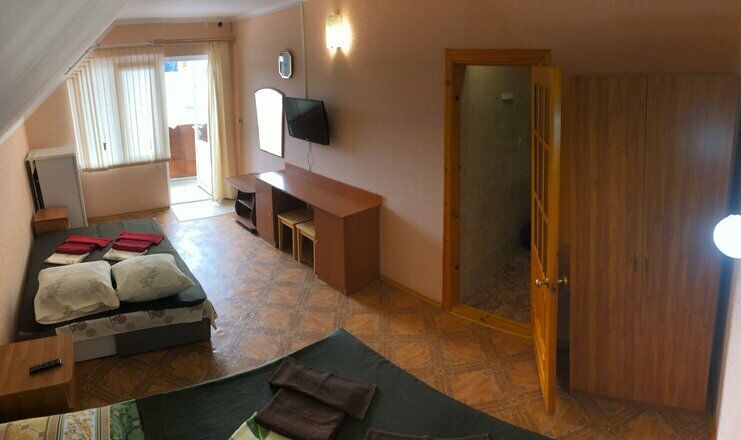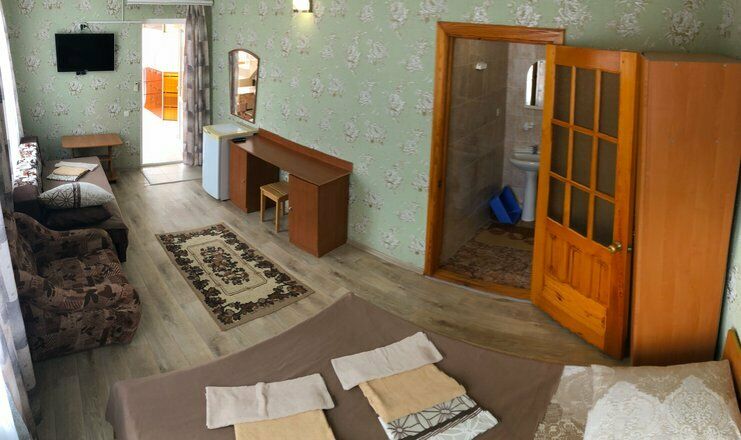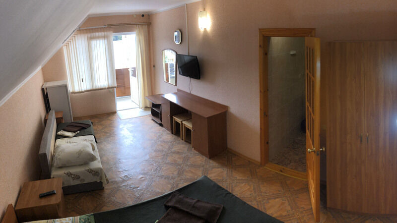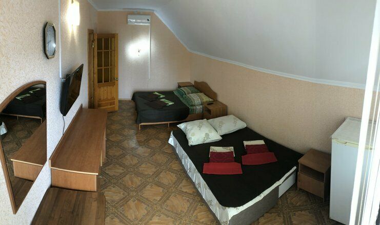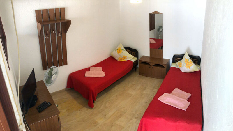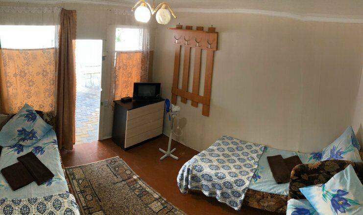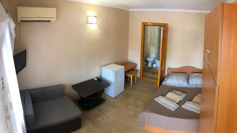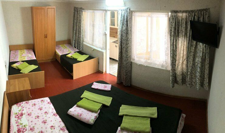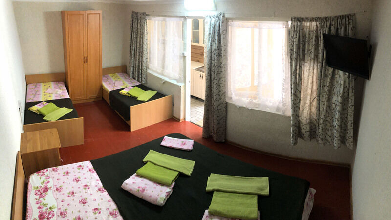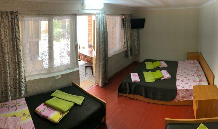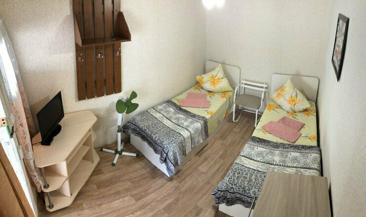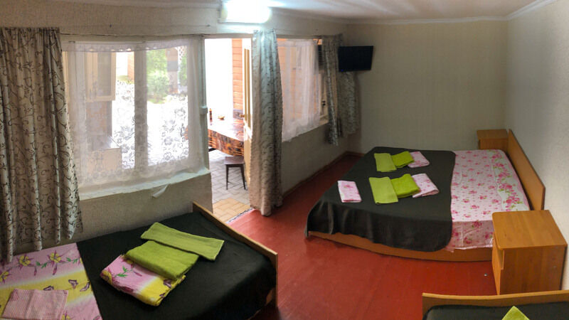 Гостевой дом обладает небольшой территорией, которая включает в себя номерной фонд, мангальную зону, обеденную зону, две общие летние кухни, место для умывания, ручной стирки и мытья посуды, общие туалеты и душевые кабины для эконом-номеров.
