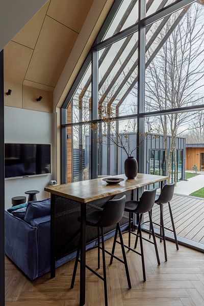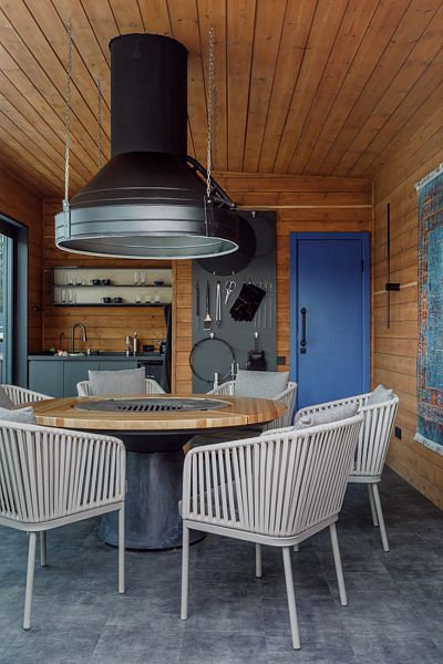 Мангальная зона с панорамным остеклением и круглым авторским столом-гриль приведет вас в восторг. Панорамное остекление можно полностью сдвинуть, что добавит вашему отдыху еще большего удовольствия в слиянии с природой, в закрытом формате возможно настроить температуру воздуха помещения и не зависеть от погоды