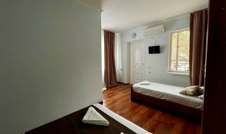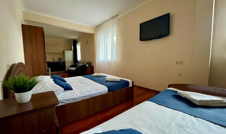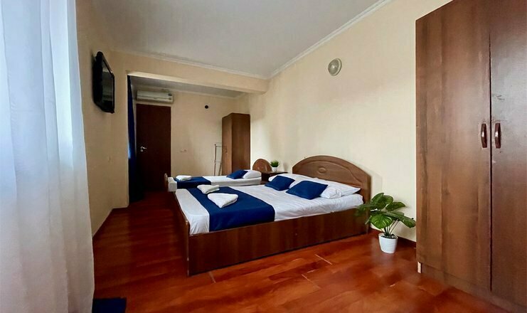 2-спальная + односпальная/двухъярусная кровати, с/у, душ, ТВ.