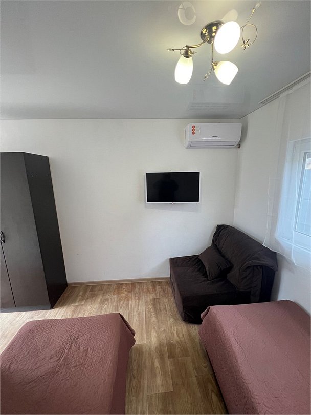 телевизор, Wi-Fi, холодильник, кондиционер, фен, банные полотенца, тумбы, шкаф для одежды, вешалки, раковина, душ, вид во двор, четыре односпальные кровати, туалет, диван-кровать, вешалки-плечики, частный двор, можно с питомцамиВ гостиничном номере