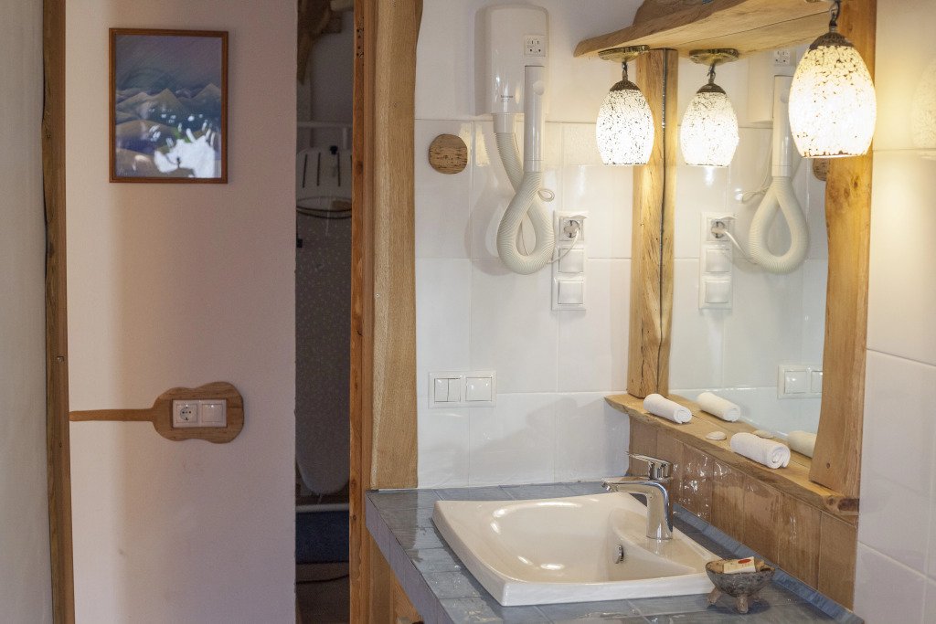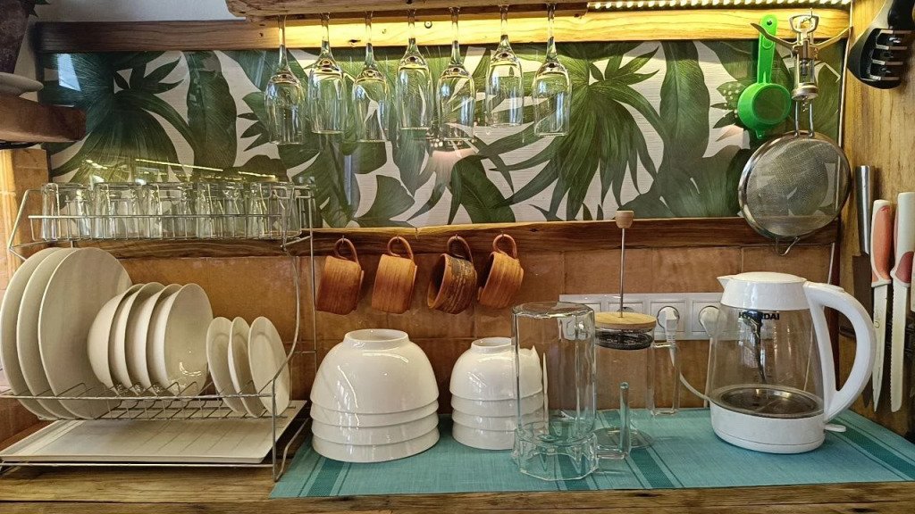 Максимальная вместимость — 4–6 человек. Во всём доме подаётся питьевая вода из горного источника. Также в доме установлены тёплые полы и выполнено утепление крыши. Дом одноэтажный, без учёта цокольного этажа, где расположены технические помещения. Предусмотрены отдельный вход, собственная парковка, терраса и двор. Дом разделён на две независимые половины — южную и северную. В каждой половине имеется кухня, ванная комната и спальня.