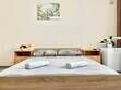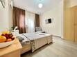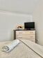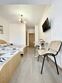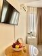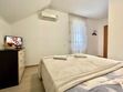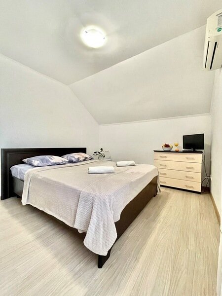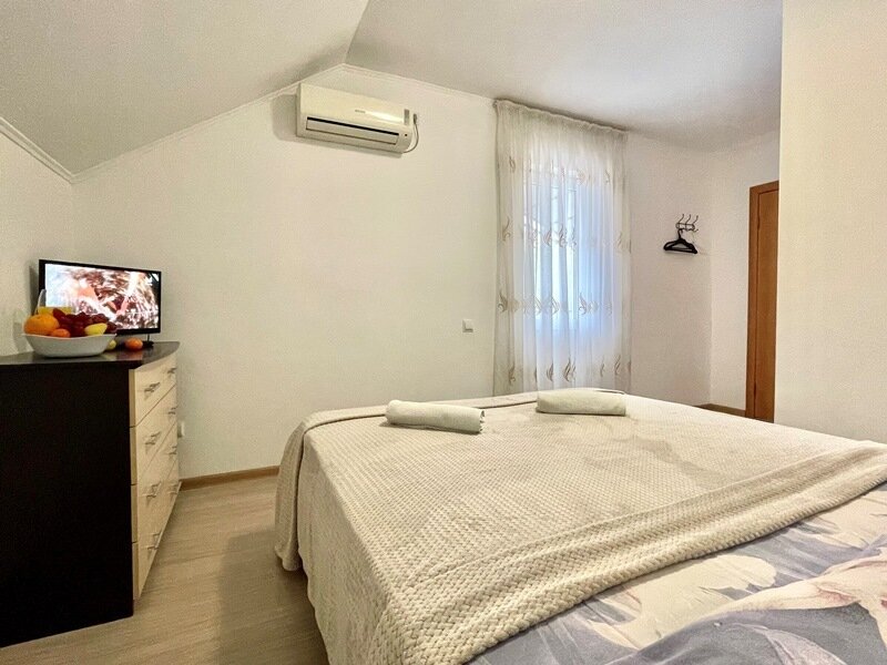 В номере двуспальная кровать, шкаф для одежды, прикроватные тумбы, ТВ, холодильник, кондиционер.