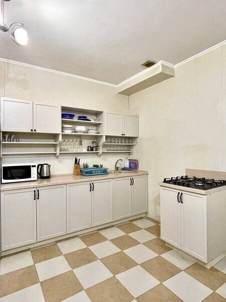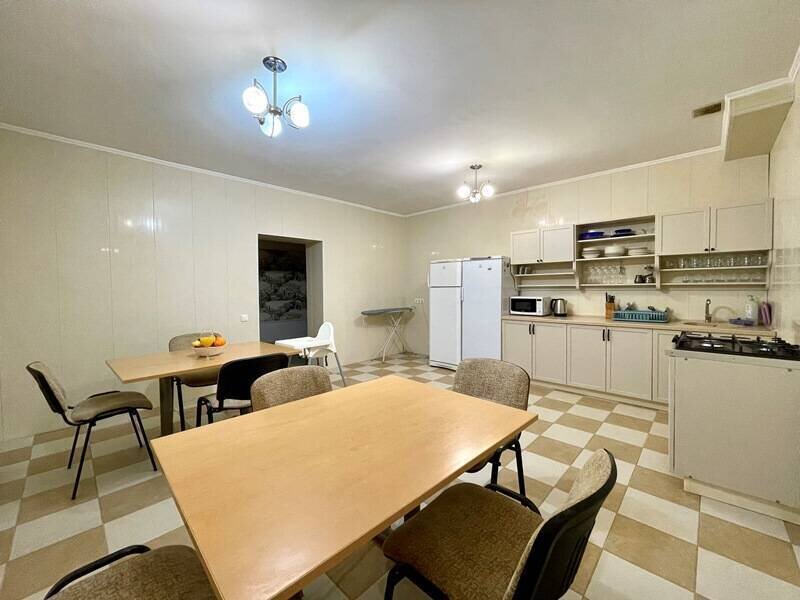 Кухня общая, с бытовой техникой и посудой. Проживающие гости могут самостоятельно приготовить или разогреть еду. Так же в пешей доступности расположены местные кафе и столовые, где гостям предложат отведать вкусные готовые блюда из меню.