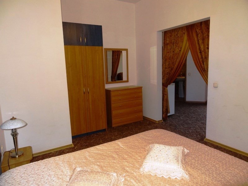 Трехместный 2-комнатный полулюкс может разместить семью из 3-4 человек. По желанию ребенок может разместиться на дополнительном месте (еврораскладушка). Номер оборудован сплит системой, есть балкон. В номере 2 комнаты, в одной большая кровать, в другой широкий диван, холодильник. Телевизор в номере позволит вам оставаться в курсе последних новостей и коротать вечера за просмотром художественных фильмов. А чтобы делиться с друзьями и родственниками подробностями своего отдыха вам на помощь придёт беспроводной интернет. Приготовить чай или кофе в номере можно с помощью электрочайника. Смыть морскую соль, после дня проведённого на море, вы сможете в ванной комнате находящейся прямо в номере.Услуги и удобства