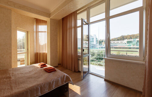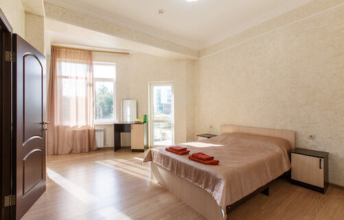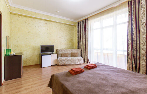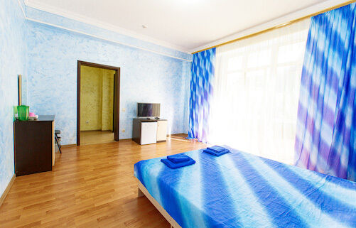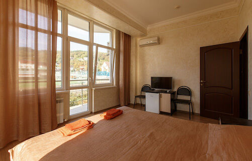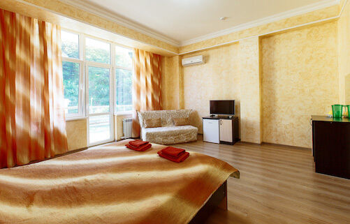 авг. 2019 г.Приятное место для спокойного отдыхаНомера: Хороший ремонт, сантехника, полотенцесушитель. Приличная мебель. Детская кроватка с хорошим матрасом. Хорошее освещение. Есть сплит и отопление, одеяла. Пластиковые окна. Большой плоский телевизор, 20 каналов. Небольшой холодильник. Сушить бельё либо на балконе в номере, либо во дворе.