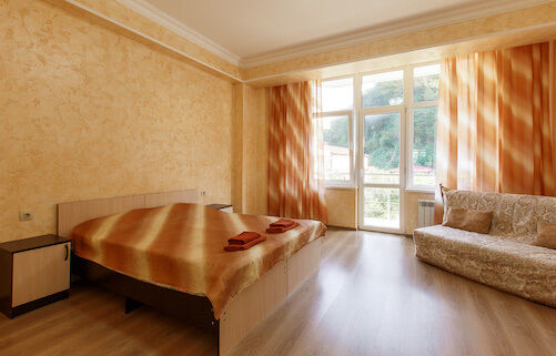 Трехэтажное здание гостевого дома разместилось на берегу горной речки Лоо возле хвойного леса. В распоряжении гостей стандартные двухкомнатные номера, в некоторых из них предусмотрены балконы. Все номера оснащены санузлом, есть кондиционер, телевизор-ЖК и холодильник.