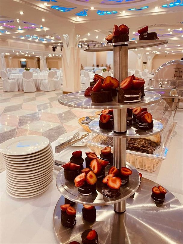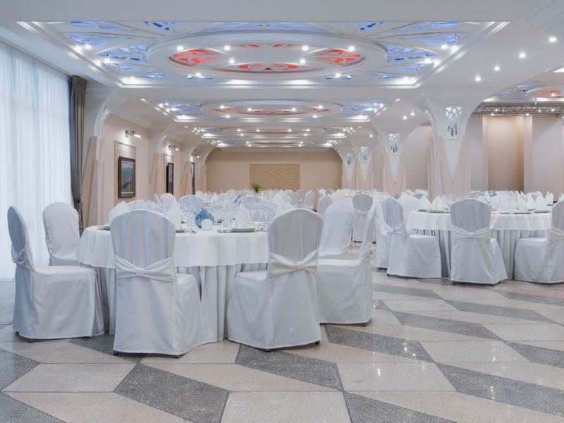 Площадь зала: 600 кв. метров.Банкетный зал оборудован отдельным входом с улицы, профессиональным звуковым оборудованием, системой кондиционирования. Данный объект идеально подходит для проведения свадеб, юбилеев, торжественных мероприятий, банкетов и фуршетов, корпоративных мероприятий среднего и большого формата.