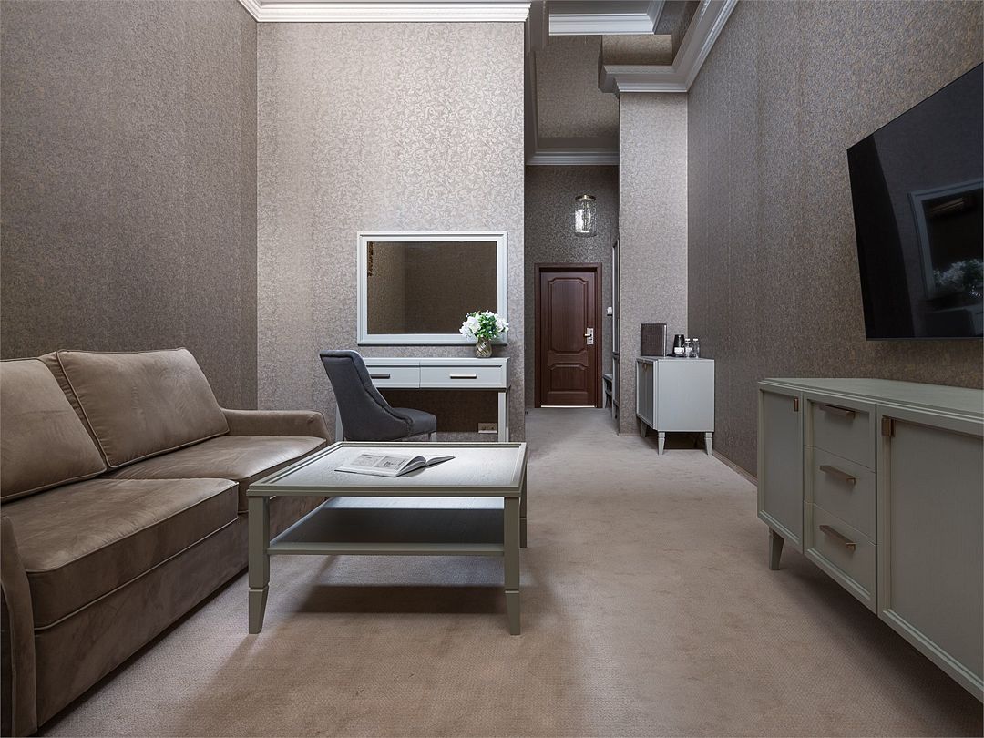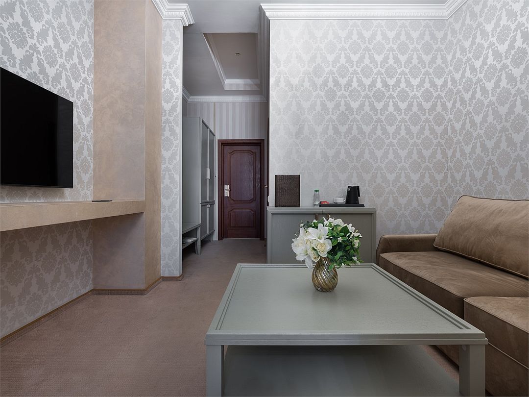 Этот улучшенный двухместный номер состоит из двух помещений – спальни с двуспальной кроватью и гостиной с диваном. Пространства настолько много, что при желании здесь могут разместиться до пяти человек. Оптимальный выбор для тех, кто путешествует вдвоем или с семьей.Услуги и удобства