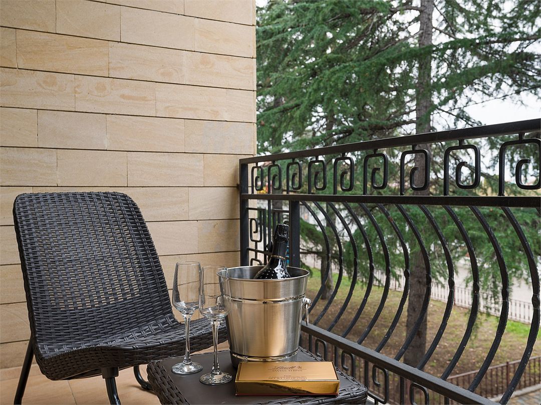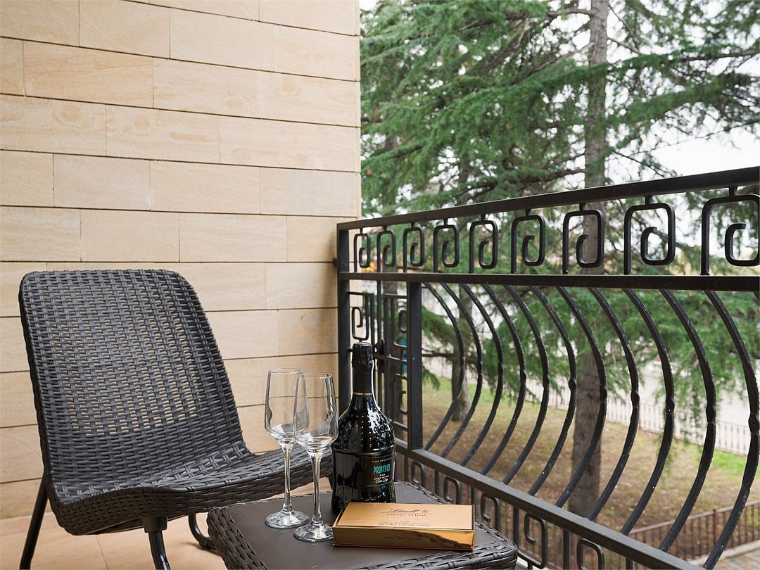 два телевизора, Wi-Fi, кондиционер, балкон, кровать «Queen size», кресла, стулья, шкаф для одежды, вешалки, журнальный столик, зеркало, две комнаты, косметическое зеркало, питьевая вода, кресло, вид во двор, туалетный столик, диван-кровать, раскладной диван, мини-холодильникВ гостиничном номере
