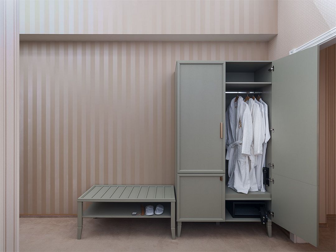 два телевизора, Wi-Fi, ванна, халаты, пляжные полотенца, тапочки, балкон, кровать «Queen size», ортопедический матрас, шкаф для одежды, вешалки, журнальный столик, зеркало, две комнаты, чайный набор, набор посуды, сейф, чайник, косметическое зеркало, питьевая вода, кресло, туалетный столик, туалетный столик, сушилка для белья, диван-кроватьВ гостиничном номере