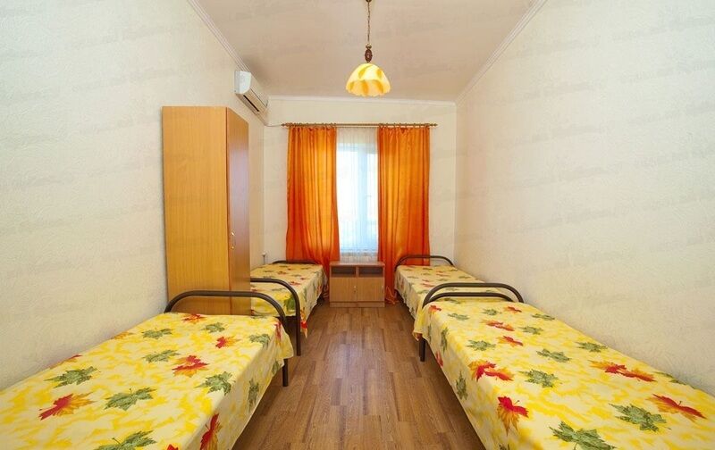 В номере: 4 односпальные кровати, шкаф, прикроватные тумбочки, телевизор, кондиционер. Санузел на этаже.