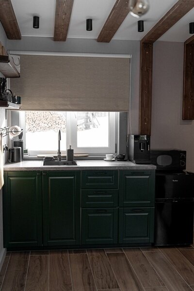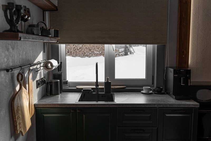 Предоставляются все необходимые гигиенические принадлежности: зубная паста и щётки, мыло, шампунь, кондиционер, гель для душа, фен. Вас ждет полный набор удобной дизайнерской посуды и приборов на четырех человек. Гостевой дом оснащен необходимой бытовой техникой, включая кофемашину, холодильник, микроволновую печь, чайник и телевизор с Алисой.