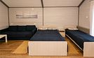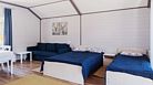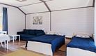прихожая, с/у с душем, посуда, электрическая плитка, СВЧ-печь, чайник, диван, 4 односпальные кровати, тумбочки, ТВ, стол, стулья, холодильник