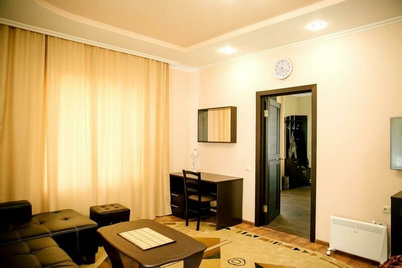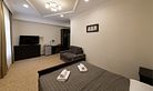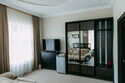 прихожая, шкаф для вещей, комната (LCD-телевизор, кровать двухспальная, диван раскладной, комод, письменный стол), туалетная комната, душ