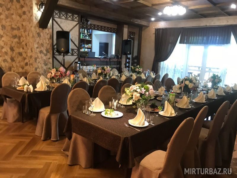 Читать полностьюБанкетный зал Эко-парка «Балчуг» – замечательное место для проведения Вашего мероприятия. Уютная обстановка зала позволит приятно провести любое торжество.Помещение идеально подойдет для семейного торжества, корпоративного мероприятия или празднования свадьбы, комфортная вместимость 40 гостей. Банкетный зал располагается на первом этаже гостевого дома. Его интерьер выполнен в бежевых тонах, отделка стен и колон из натурального камня, а потолка - натуральным деревом, что добавляет помещению больше уюта и тепла. С бежевым цветом стен прекрасно сочетается оформление зала живыми цветами и яркими шарами. Отдельный вход, терраса с видом на Енисей, большая уличная площадка (летом на ней можно расположить «приветственный фуршет»).Стоимость:- Аренда зала (от 5 до 20 чел.) с 11:00 до 23:00 - 25 000 ₽.