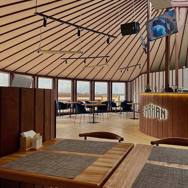 Панорамное Кафе-юрта «BARHAN» на берегу озера вмещает до 70 гостей и идеально подходит для встреч с друзьями, семейных обедов и торжеств. Меню разработано с учетом разнообразных вкусов, включая специальное детское меню и индивидуальное обслуживание.