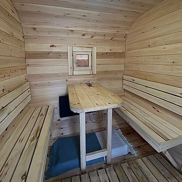 Арендующим доступна теплая купель, стол с двумя скамьями и два шезлонга с матрасами из сена. Это идеальное место для романтических вечеров, семейного отдыха или дружеских встреч под звездным небом.