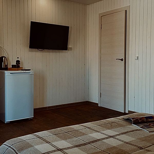 Комфортный 2-х местный номер. Номер расположен в отдельностоящем одноэтажном гостиничном корпусе на берегу озера. Размер номера 24 м². В номере есть постельное белье, мыло, полотенца для тела по количеству мест.