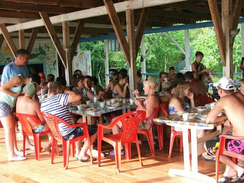 Питаться можно в столовой либо самостоятельно. Для самостоятельного приготовления еды посетителям предоставлена оборудованная кухня, также имеются специальные мангалы, где можно приготовить вкуснейшие шашлыки.