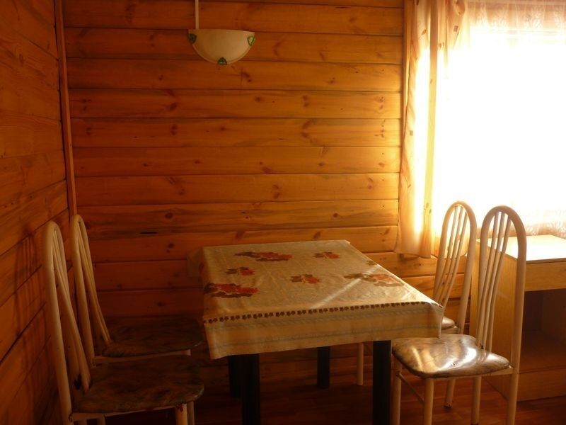 На территории туристического комплекса расположены деревянные домики, которые одновременно могут поместить до 12 человек. Если приезжает компания, при желании они могут арендовать полностью всю базу.