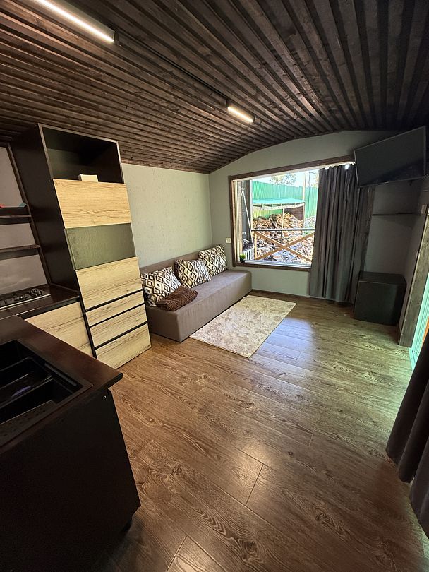 Для проживания гостей предлагается уютный дом с удобствами и видом на озеро, оснащенный всем необходимым для вашего комфортного отдыха. В доме имеется кухня, оборудованная бытовой техникой и набором посуды, современная мебель, терраса и выход на специально оборудованную зону загара на втором этаже.