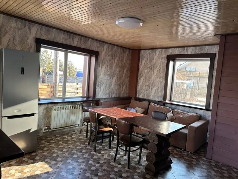 На каждом этаже своя терраса, на первом большой стол, качели, рядом мангальная зона. Два санузла.