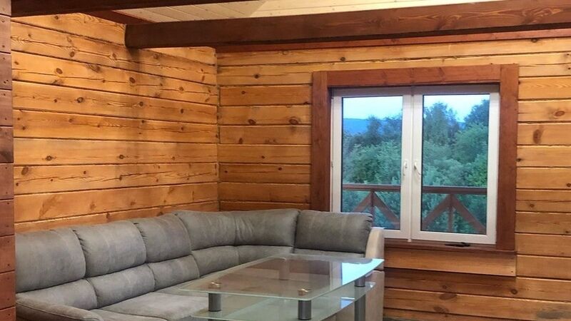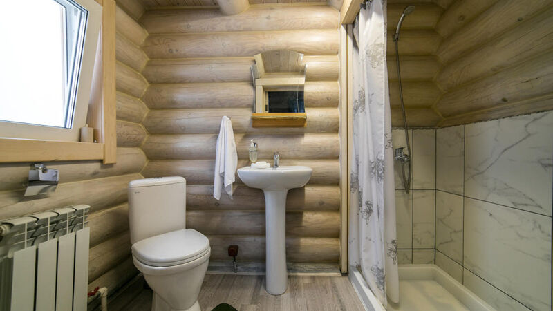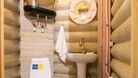 Русская банька из бруса с комнатой отдыха, парной, душевой, туалетом и летней верандой.