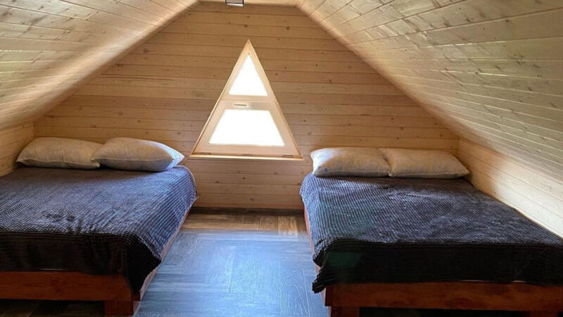 В доме: 2 этажа, кухня, спальные места, санузел.