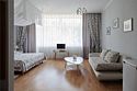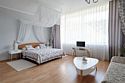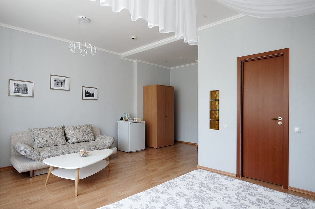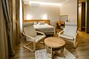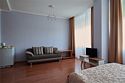 Просторный номер площадью около 30 кв.м. Дизайн в спокойных пастельных тонах. Балкон. Вид на сосновый лес.