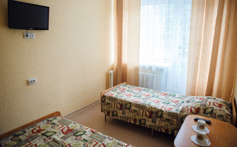 Двухместный номер располагается в блоке из двух номеров. Площадь номера - 12 кв.м. На блок из двух комнат - общий туалет и душевая комната.