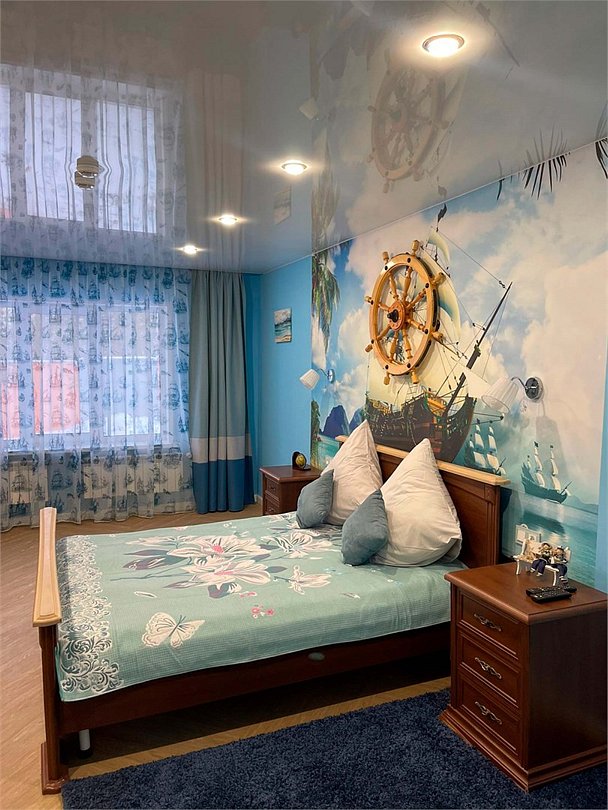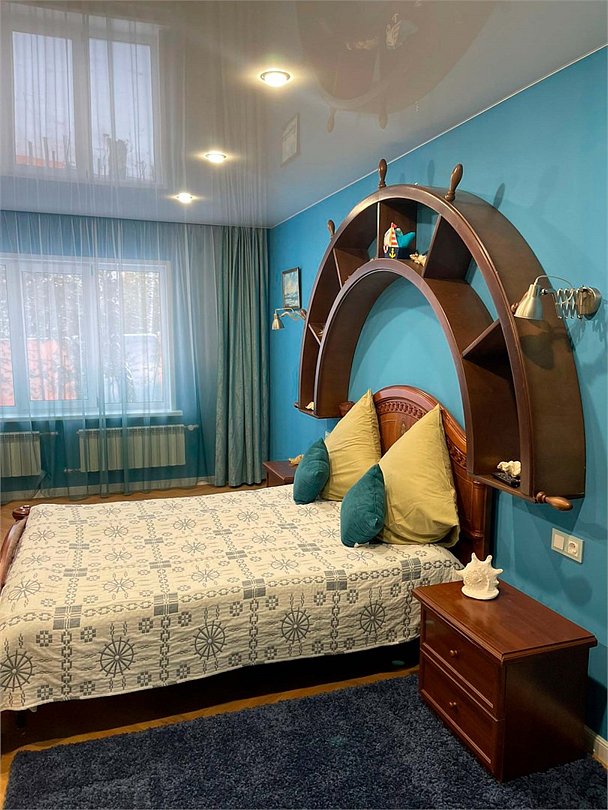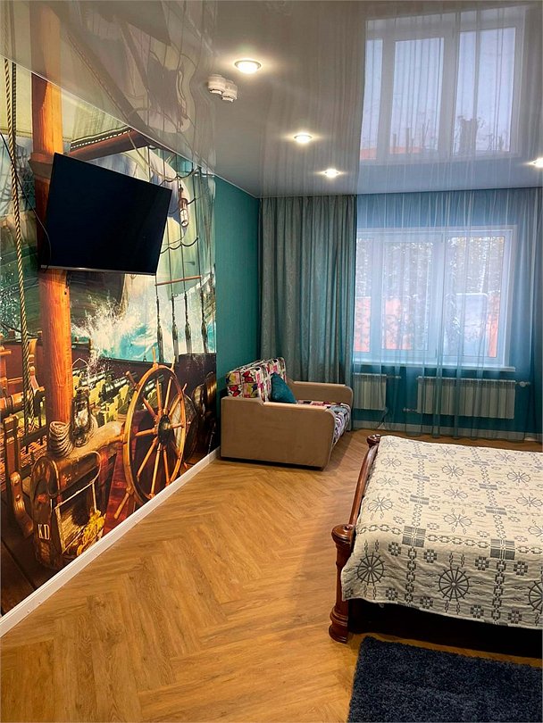 Номер тематический 4-местный "Морской причал". Сдается полностью. У номера своя уютная уличная зона: мангал на вымощенном камнем дворике, просторная веранда сквозь которую растут берёзки, детская площадка с качелями и песочницей. В номере 2 изолированные комнаты + кухня + санузел. Кухня полноценная, с плитой, микроволновкой и небольшим холодильником. Возможно дополнительное место на раскладном удобном диване, стоящем в одной из спален. Номер находится в отдельностоящм здании.Услуги и удобства