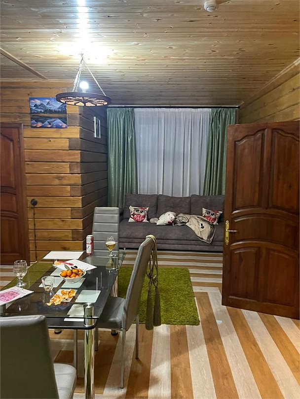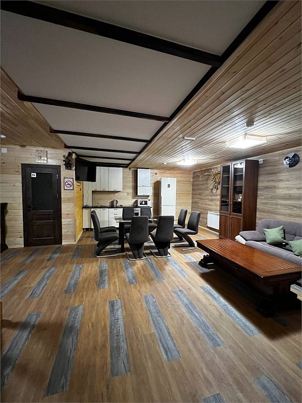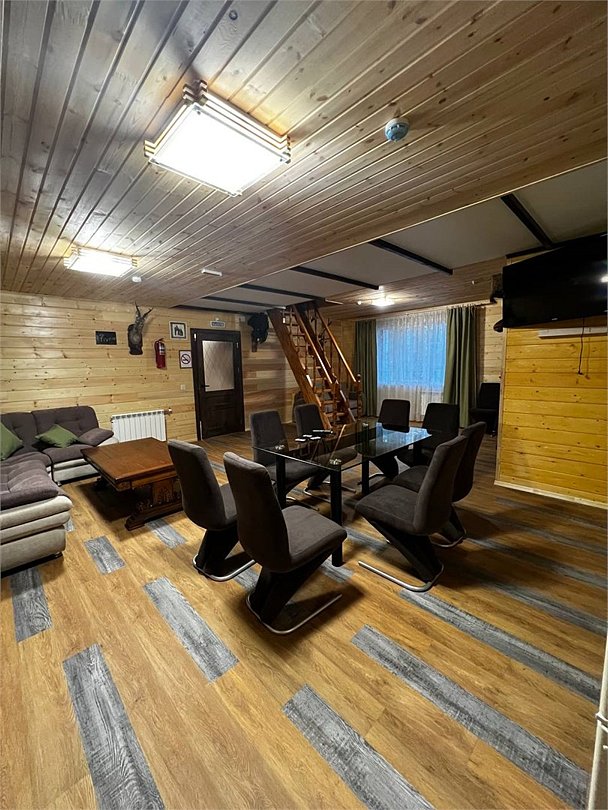 Коттедж на 12 человек с отдельно стоящим банным комплексом и купелью под открытым небом. Большая, даже огромная веранда. Стационарный удобный мангал. Всё это великолепие стоит в роще с высоченными берёзками. 2 этажа. 1 этаж. - Санузел с большой душевой кабиной. - Большой холл с полноценной кухней со всей бытовой техникой, где вы сможете сами готовить при желании. - 2 комнаты изолированные, в каждой по 2-спальной кровати. 2 этаж. - Диван раскладной - Большая комната с 3 2-спальными кроватями Коттедж свежий, чистый, вкусно пахнущий, стилизован по охотничью избу богатого охотника. Отличная фотозона для огромного количества идей. Комплекс стоит изолированно от других гостей, вы и ваша компания или семья будете в лесу, одни, в безопасности и красоте. Хозяин тайги ждёт вас.Услуги и удобства