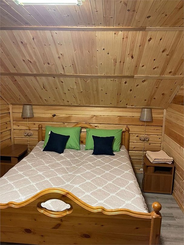 Отдельно стоящий деревянный коттедж на 10 человек. - большая веранда для вечерних посиделок с друзьями или семьёй - 2 этажа - стоит в берёзовой роще - с полноценной кухней со всей бытовой техникой где вы сможете готовить сами свои любимые блюда если не посещаете столовую - очень тёплый с огромными окнами 1 этаж: кухня, уютная гостиная для вечерних посиделок со столом и двумя удобными диванами. Диваны раскладные 2-спальные. Также на 1 этаже 1 изолированная спальня с 2-спальной кроватью. 2 этаж: 2 изолированные спальни с 2-спальными кроватями.Услуги и удобства