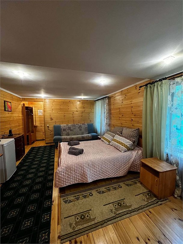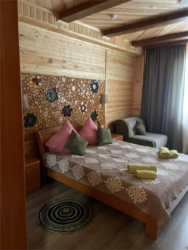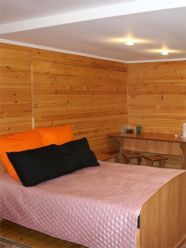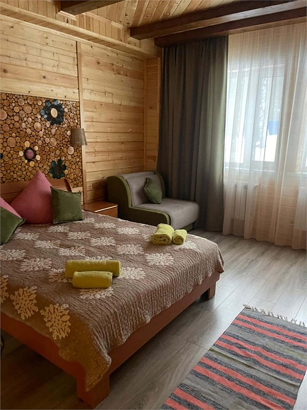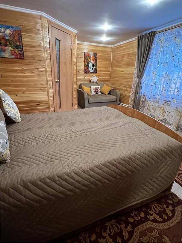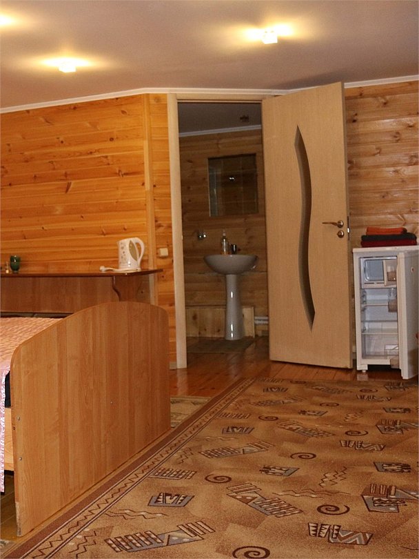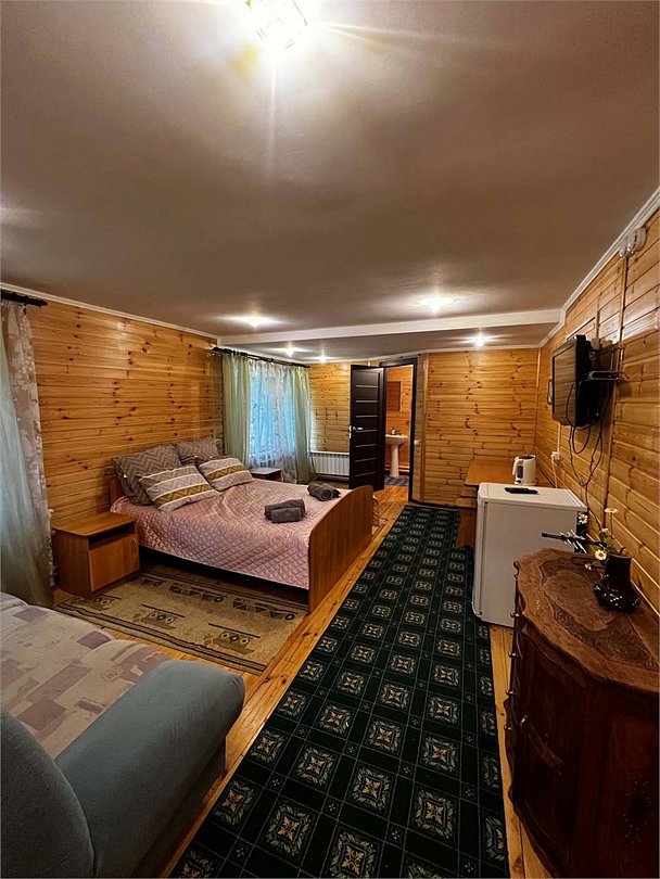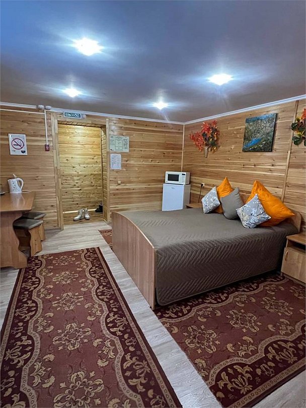 Номер тематический 10-местный "Русская изба". Сдается полностью. У номера своя уютная уличная зона: мангал на вымощенном камнем дворике, просторная беседка В номере 4 изолированные комнаты + кухня + 2 санузла. Кухня полноценная, с плитой, микроволновкой и холодильником. Возможны 4 дополнительных места на раскладных удобных диванчиках, стоящих в одной из спален. Номер занимает половину в отдельностоящего здания.Услуги и удобства