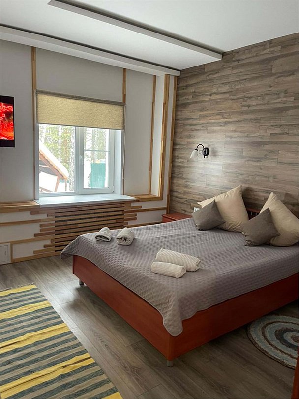 «Шишкин дом» — этаж в уютном доме среди сосен «Шишкин дом» — это просторный этаж в двухэтажном доме на базе отдыха «Белая сова», идеально подходящий для семьи или небольшой компании до 5 человек. Вы можете выбрать и забронировать конкретный этаж, который вам подходит, и отдыхать без лишних соседей и суеты. На этаже: 2 отдельные спальни Полностью оборудованная кухня (холодильник, чайник, посуда, кухонная мебель) Санузел и душевая 5 основных спальных мест 1 дополнительное место (оплачивается отдельно) В стоимость проживания включено: Кристально чистое постельное бельё Парковка для автомобилей Индивидуальная шашлычная зона Дом расположен на ухоженной территории базы, в окружении сосен и чистого воздуха. Здесь легко переключиться с города на отдых: спокойно, просторно и по-настоящему уютно.Услуги и удобства