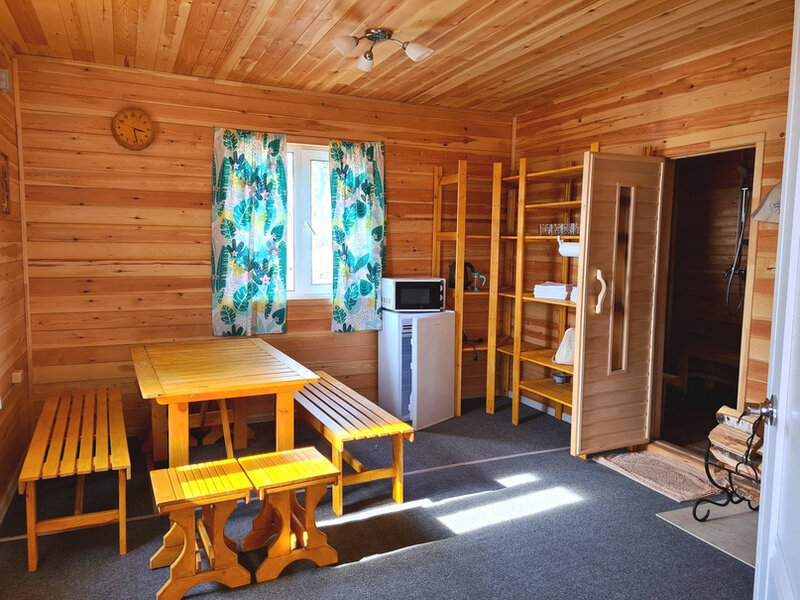 - Русская баня на 10–12 человек. Есть холодильник, микроволновая печь, чайник, индукционная плита, кружки, полотенце. Аренда от 2–х часов. Стоимость — 1600–1900 ₽/час.